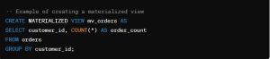 Materialized views are precomputed result sets stored as physical tables, allowing for faster data retrieval and reduced query execution times, especially for complex queries or aggregations. Refresh materialized views periodically to keep them synchronized with underlying data changes.