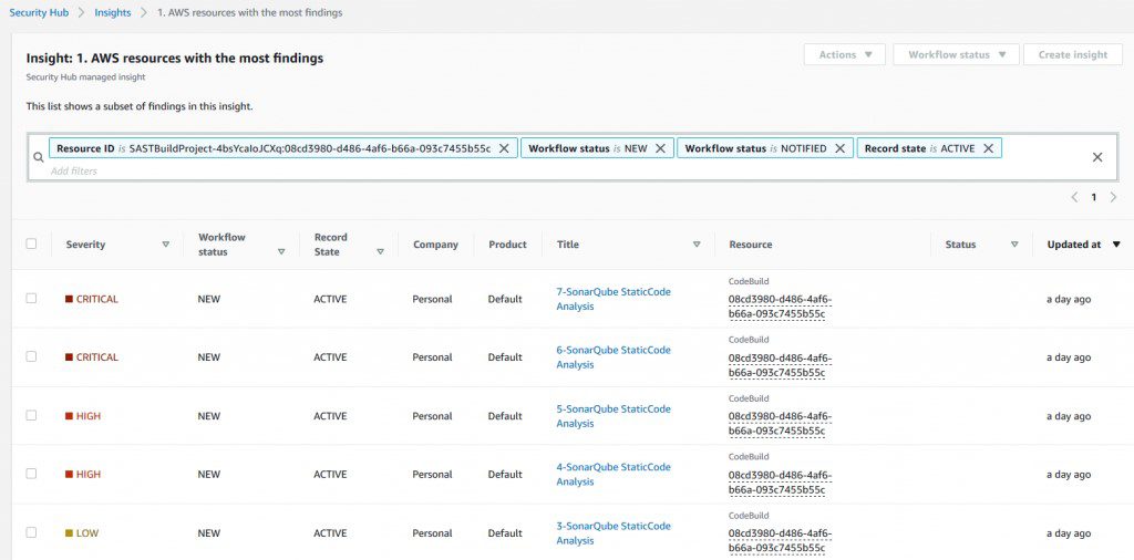 Fig. SecurityHub report from OWASP Dependency-check scanning